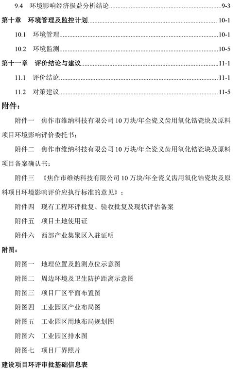 關(guān)于焦作市維納科技有限公司10萬塊/年全瓷義齒用氧化鋯瓷塊及原料項目環(huán)評報告書信息公司。